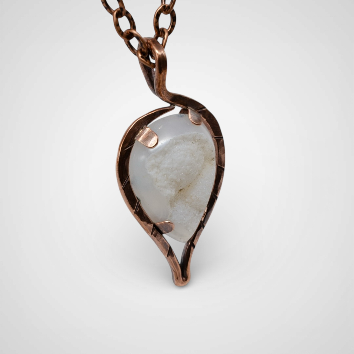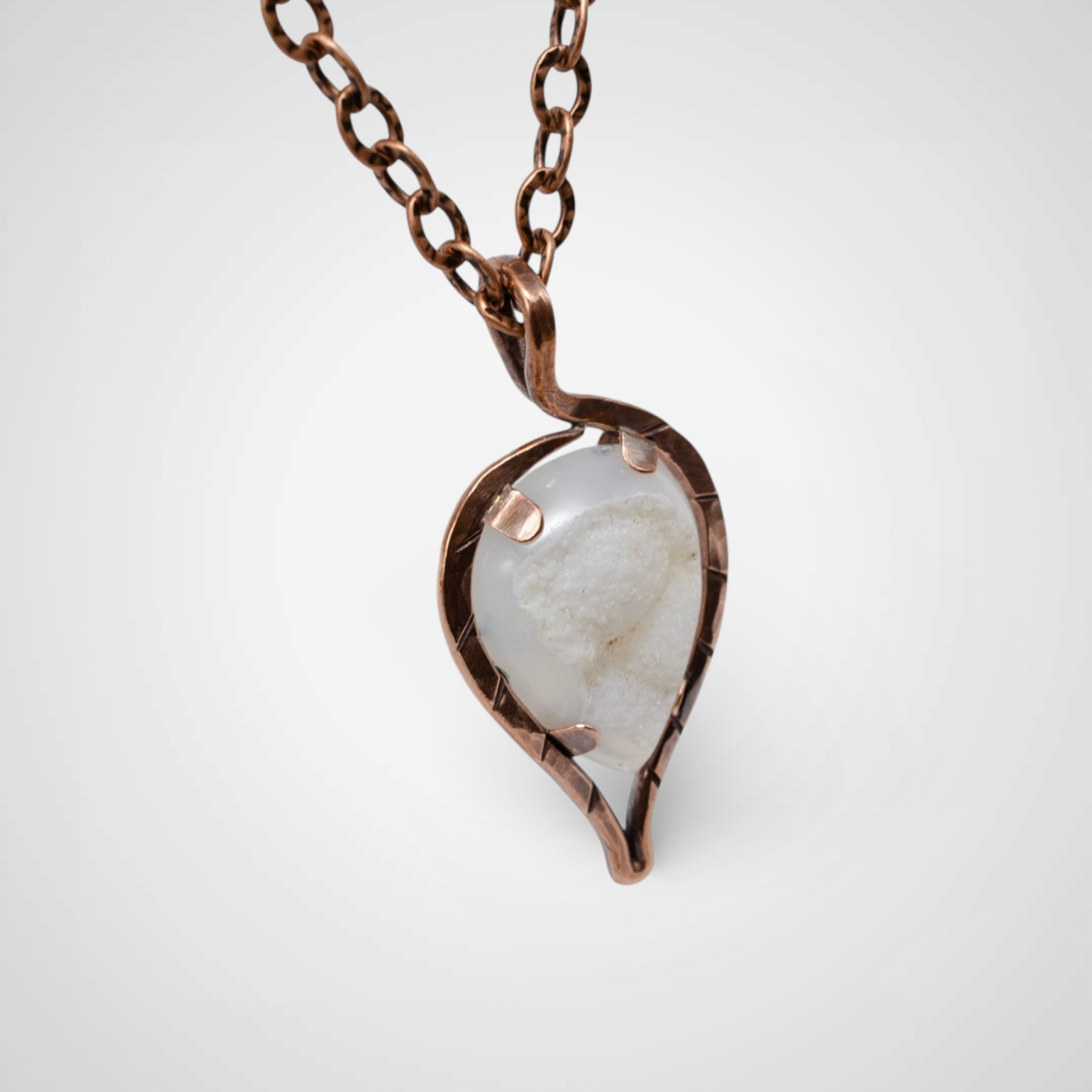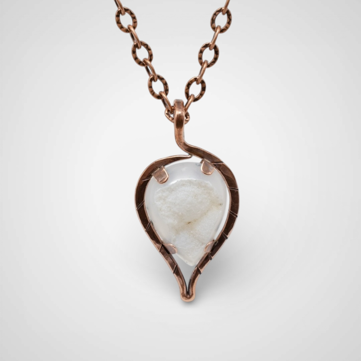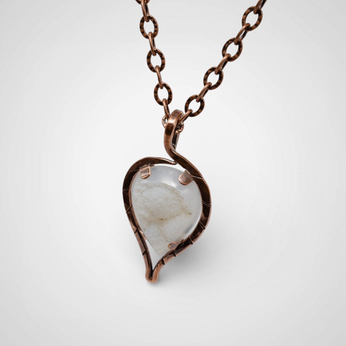Photos truly do not do this pendant justice. As the light hits the druzy crystal at the center, it softly glimmers and sparkles, creating a warming, almost uplifting glow that shifts as you move. It is one of those pieces that feels alive, revealing new details the longer you wear it.